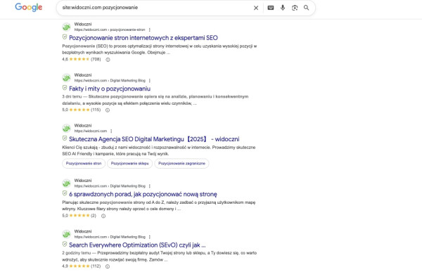 To prosta, ale często pomijana metoda, która daje dużo bardziej obiektywny obraz sytuacji. Zobaczysz wtedy, czy np. artykuł blogowy i strona kategorii są równolegle oceniane jako podobne wyniki.