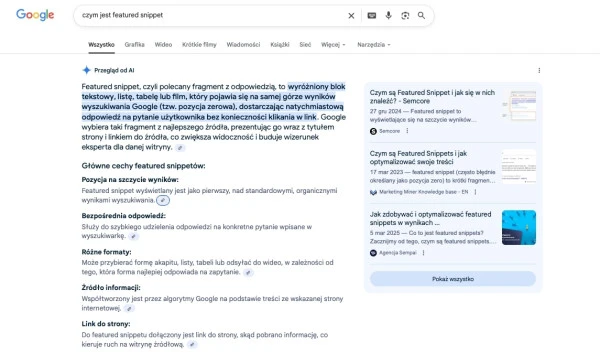 3. Funkcje SERP - featured snippet, Google AI Overviews i inne