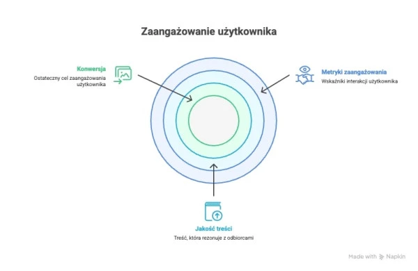 Mierniki zaangażowania, czyli Engagement Metrics, to wskaźniki interakcji użytkowników ze stroną (np. współczynnik zaangażowania, średni czas trwania sesji, głębokość przewijania). Są one szczególnie istotne w kontekście wyszukiwania AI, gdzie zaangażowanie użytkownika jest równie ważne jak konwersja. Metryki zaangażowania pokazują, czy użytkownik jest zainteresowany Twoją treścią. Aby utrzymać to zainteresowanie, warto tworzyć jakościowy content, który dostarcza konkretnych informacji, autorskich danych i buduje autorytet Twojej strony. Metryki zaangażowania pokazują, czy te treści rezonują z odbiorcami i satysfakcjonują ich intencje wyszukiwania, co jest kluczowe dla Google i AI. Wspominaliśmy wcześniej o sentymencie w AI - to on może zadecydować o tym, czy odbiorca będzie angażował się w czytanie Twoich treści i czy doprowadzi to do konwersji. Dlatego warto mierzyć zaangażowanie użytkownika. Czytaj więcej o zaangażowaniu klienta.