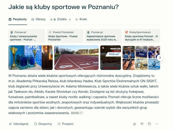 Przykładowe zapytanie o marki w narzędziu Perplexity.