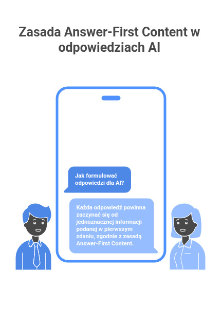 Answer-first content polega na umieszczaniu najważniejszej informacji w pierwszym zdaniu sekcji - tak aby AI mogło ją wykorzystać bez interpretacji. Dzięki temu AI: