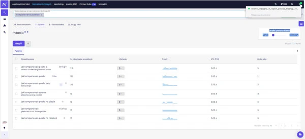 - wykorzystuj narzędzia do analizy zapytań, takie jak Senuto, które pozwalają filtrować frazy według formy pytań,