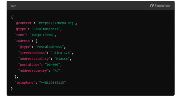 Przykład kodu Schema.org dla oznaczenia lokalnej firmy