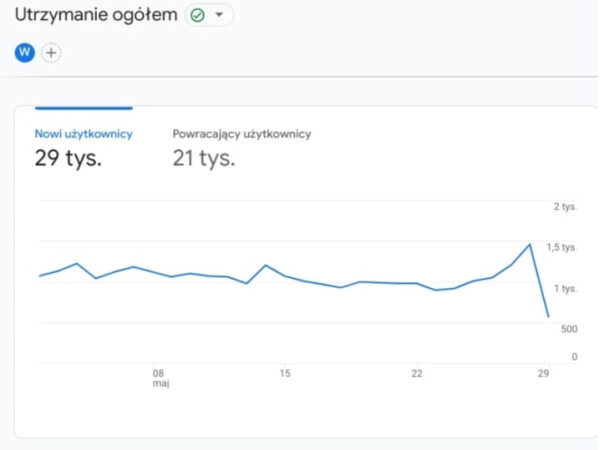 • utrzymanie, który pokazuje m.in. procent ruchu pochodzący od nowych i powracających użytkowników.