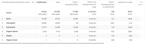 Jak sprawdzić efekty SEO? Kluczowym wskaźnikiem dla strategii może być również wzrost liczby sesji organicznych. Jeżeli zauważysz wzrost wyświetleń organicznych na stronie, możesz się spodziewać również wzrostu liczby sesji. Wyświetlenia powodują ruch, który może zmienić się w konwersję. W związku z tym zwiększona liczba sesji organicznych to naprawdę ważny wskaźnik KPI SEO. Jak to sprawdzić? Polecamy wykorzystać w tym celu Google Analytics, możesz to zrobić przechodząc kolejno przez zakładki Pozyskiwanie > Cały ruch > Kanały.