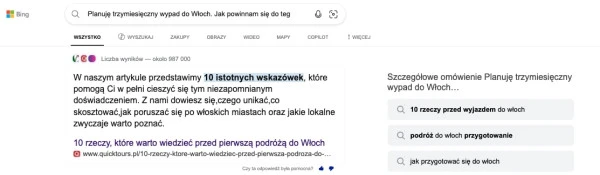 - generowanie określonej liczby najczęstszych pytań dopasowanych do tekstu - wystarczy wkleić treść i dodać odpowiednie wytyczne (wygeneruj X najczęściej zadawanych pytań na podstawie następującej treści). Nawet jeśli pytania te mają zerową liczbę wyszukiwań, to i tak mogą generować ruch.