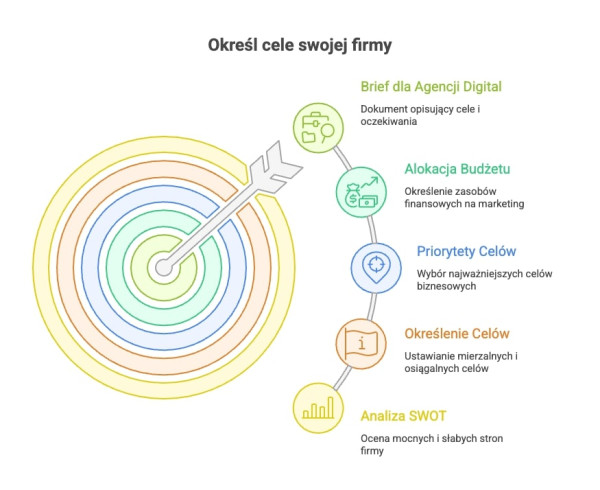 Zanim agencja rozpocznie pracę z Tobą, ważne jest, aby ustalić jasne cele i KPI, które będą służyć do pomiaru sukcesu.