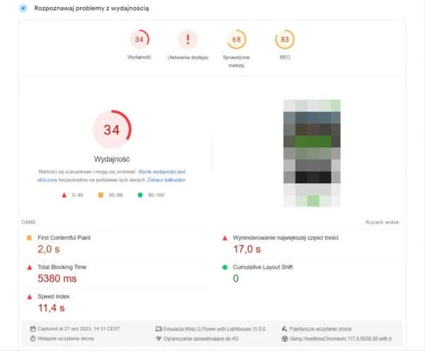 Narzędzie PageSpeed Insights do analizy szybkości strony.