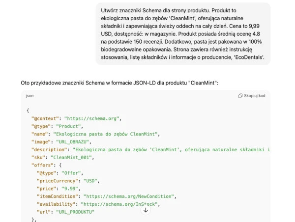 Jak optymalizować stronę z ChatGPT w praktyce - oto przykład promptu dla narzędzia AI do generowania znaczników Schema: