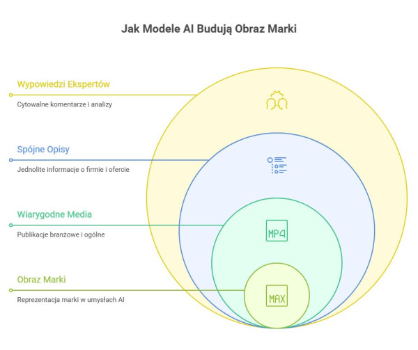Modele AI analizują ogromne zbiory treści i na tej podstawie budują obraz marki: czym się zajmuje, w jakim kontekście występuje i czy można jej zaufać. Nie szukają Twojej firmy jak użytkownik w Google, tylko zbierają powtarzające się informacje z wielu źródeł naraz. Dla widoczności w AI liczą się przede wszystkim: