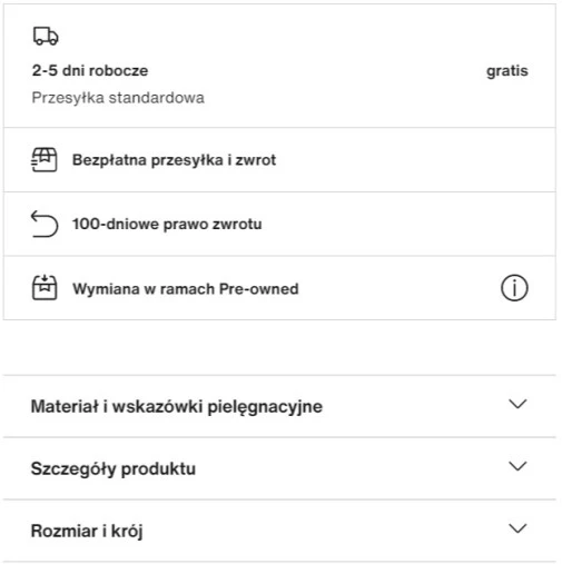 Informacje o wysyłce i możliwości zwrotu na stronie produktowej, źródło: Zalando