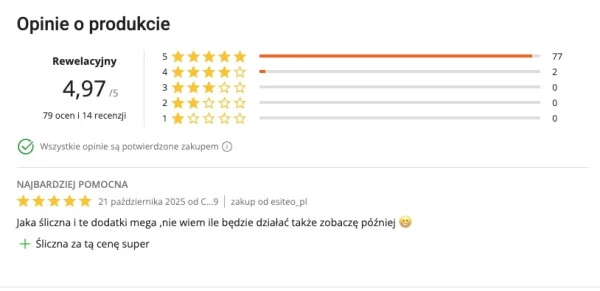Nie możesz zapomnieć o dowodach społecznych. Eksponuj opinie klientów, na przykład umieszczając je na stronie produktowej, pokazuj sygnały zaufania społecznego i wykorzystaj UGC, czyli treści generowane przez użytkowników.
