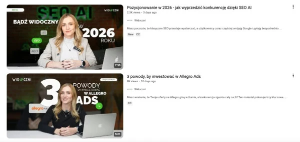 Przykładowy content firmowy na YouTube.