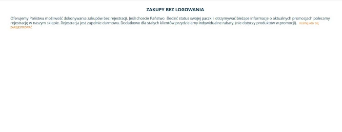 Komunikat mówiący o możliwości wykonania zakupów bez konieczności rejestracji