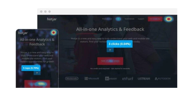 - Hotjar - rejestruje mapy ciepła i nagrania sesji.