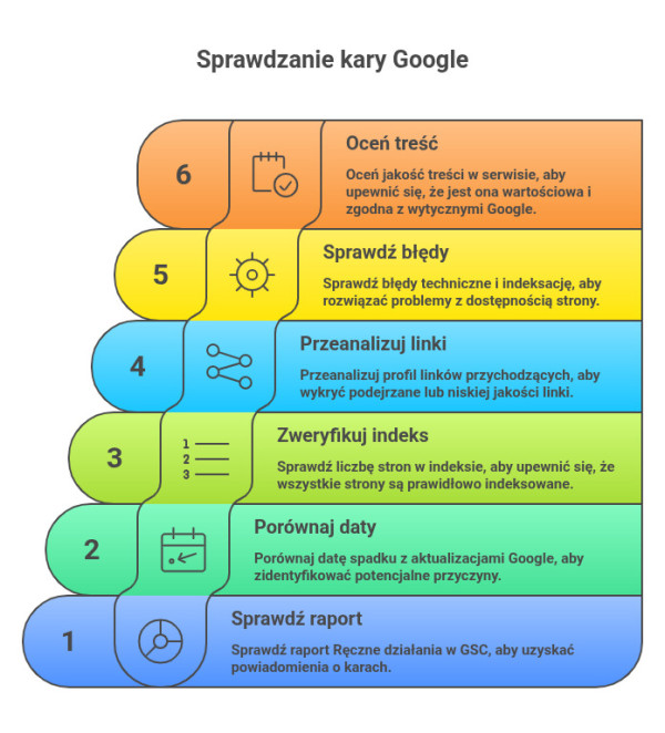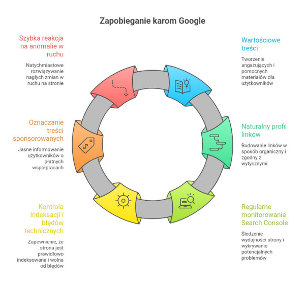 Dla zapobiegania karom Google ważne jest też regularne monitorowanie sytuacji. Im wcześniej wykryjesz anomalię, tym większa szansa, że zdążysz z korektą, zanim przełoży się ona na spadek widoczności.