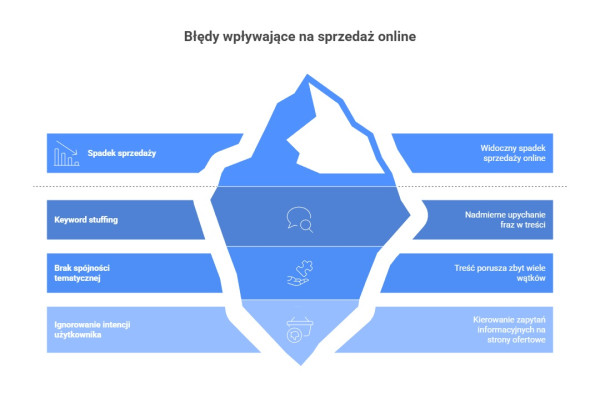 Jednym z najczęstszych błędów jest kierowanie zapytań informacyjnych na strony ofertowe lub odwrotnie. Użytkownik szukający wiedzy nie jest gotowy na zakup, a osoba zdecydowana na działanie nie chce czytać ogólnych porad. Takie niedopasowanie powoduje frustrację i zwiększa współczynnik odrzuceń, co bezpośrednio wpływa na sprzedaż.