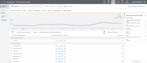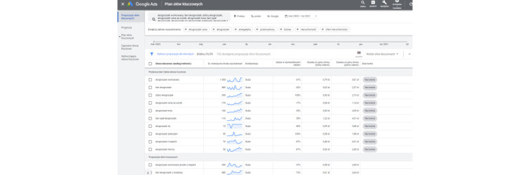 Analiza słów kluczowych w Keyword Plannerze