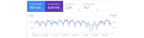 Wyświetlenia i kliknięcia strony w Google Search Console. Źródło: Google Search Console
