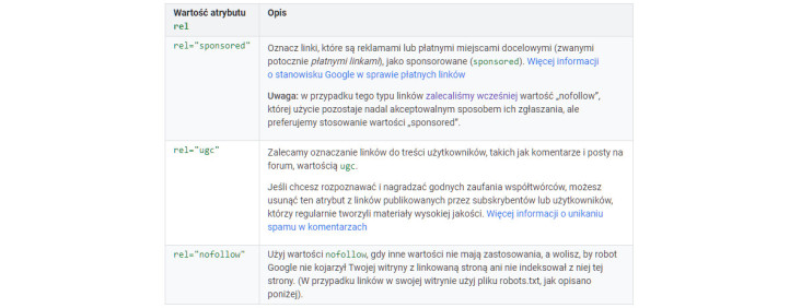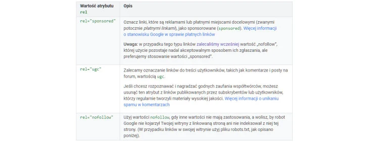 Aby dowiedzieć się więcej o tych artybutach przeczytaj koniecznie nasz artykuł Nowe atrybuty sponsored i ugc. Jak je stosować i co oznaczają?