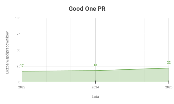 - a osoby zajmujące się PR stanowią min. 10% zespołu.