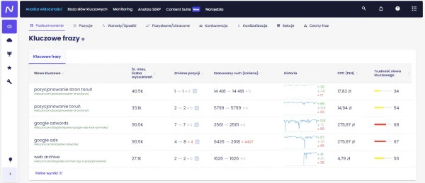 - analiza SEO popularności słów kluczowych oraz ich związku z daną witryną,