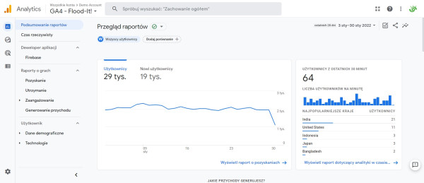 Google Analytics 4 (GA4) to narzędzie analityczne, które pozwala na śledzenie zachowań użytkowników na stronie internetowej oraz w aplikacjach mobilnych. Jest to najnowsza wersja popularnego narzędzia Google Analytics, która zastępuje starszą wersję Universal Analytics. Oprócz standardowych funkcji takich jak analiza SEO ruchu na stronie, dane dotyczące ilości czasu spędzanego w witrynie, współczynnik zaangażowania czy liczba konwersji, GA4 oferuje też lepszą kontrolę nad prywatnością użytkowników i umożliwia zbieranie danych o klientach bez plików cookies.