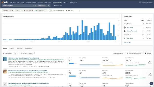 Ahrefs to kolejne narzędzie, dzięki któremu możesz wykonać kompleksowy audyt SEO strony internetowej. Oferuje ono wiele funkcjonalności związanych z pozycjonowaniem i link buildingiem, takich jak przeprowadzenie analizy konkurencji, badanie słów kluczowych, monitorowanie pozycji strony w wyszukiwarce Google oraz analizę linków przychodzących. Korzystając z narzędzia Ahrefs, otrzymujesz też dostęp do statystyk związanych z szacowanym ruchem organicznym na stronie, takich jak liczba wejść, czas spędzany na stronie czy liczba odsłon.