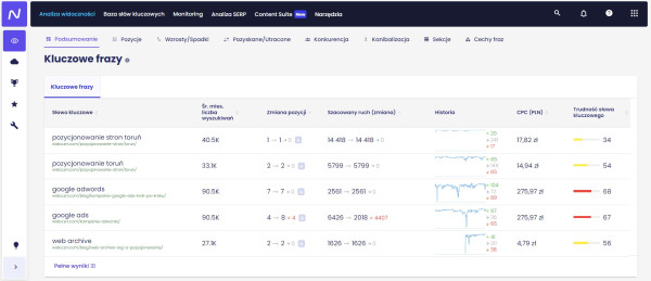 - analiza SEO popularności słów kluczowych oraz ich związku z daną witryną,