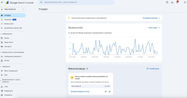 - Monitorowanie skuteczności treści strony w wynikach wyszukiwania,