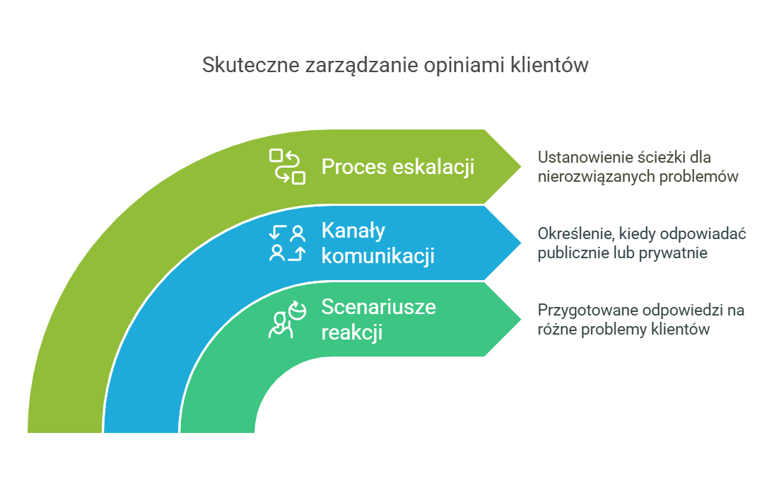 - Publiczna odpowiedź na negatywne opinie jest konieczna, ale eskalację konfliktu warto przenosić na kanał prywatny.