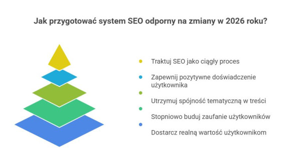 SEO staje się w ten sposób procesem ciągłej adaptacji, a nie realizacją zamkniętego planu.