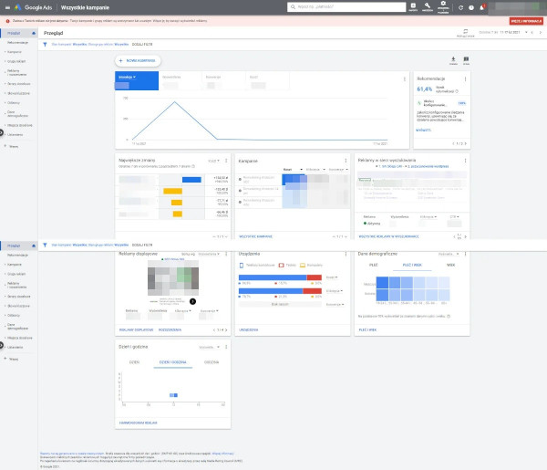 Widok panelu Google Ads.