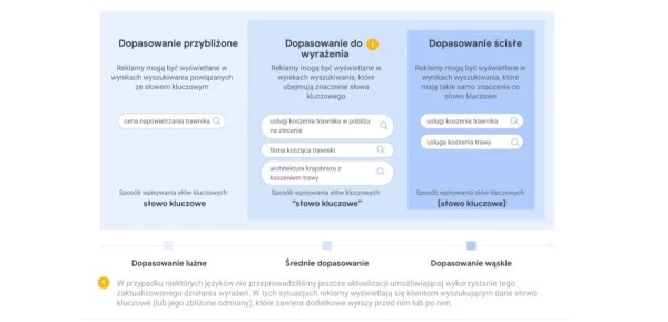 Czym różnią się typy dopasowania słów kluczowych?