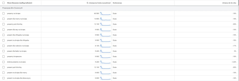 Popularność fraz świątecznych w Google Ads.