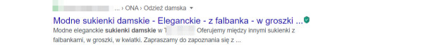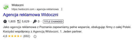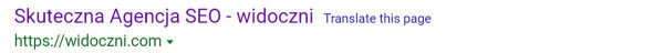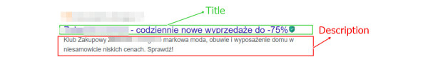 Prawidłowo zoptymalizowane meta tagi - title i description - widoczne w wynikach wyszukiwania Google.