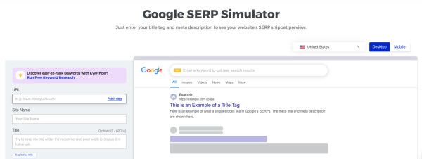 - Mangools SERP Simulator - umożliwia szybkie sprawdzenie, jak title i description będą się wyświetlać na desktopie i mobile. Dobrze pokazuje moment ucięcia tekstu i proporcje pikselowe.