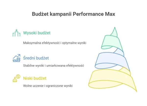 - kampanie Performance Max wymagają solidnych budżetów, aby mogły funkcjonować w całym asortymencie Google (Search, Display, YouTube, itd.).