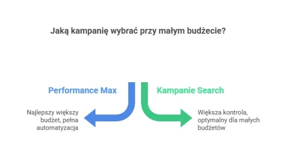 - wymagana kontrola: przy tak ograniczonym budżecie reklamodawca musi mieć większą kontrolę nad tym, gdzie pojawiają się reklamy, a Performance Max tej kontroli nie zapewnia.