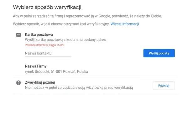 Założenie wizytówki firmy jest bardzo proste, dlatego nie musisz tego zlecać ekspertom z agencji digital. Pierwszym etapem jest zweryfikowanie, czy nie została już ona wcześniej uruchomiona. Zdarza się, że firma, która istnieje na rynku od dłuższego czasu ma już wpis w wówczas musisz ją zgłosić i poprosić o dostęp. jeżeli wizytówka Twojej firma nie została jeszcze utworzona, możesz ją szybko skonfigurować. Zobacz, jak to zrobić.