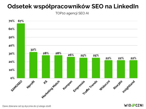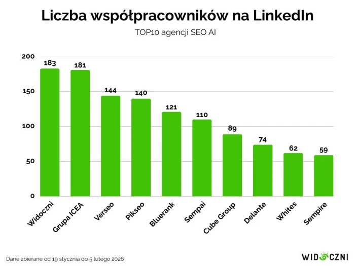 Agencje GEO/SEO AI w Polsce wg liczby współpracowników na LinkedIn - ranking 2026