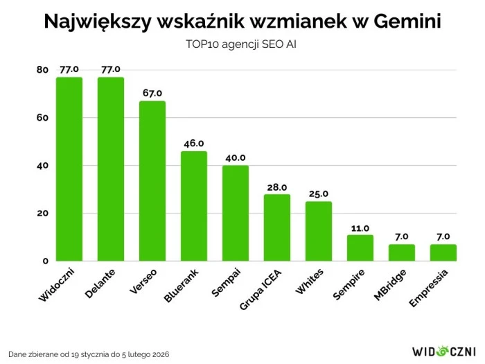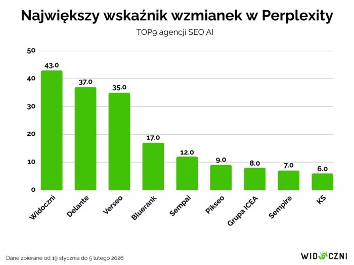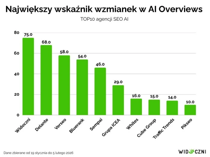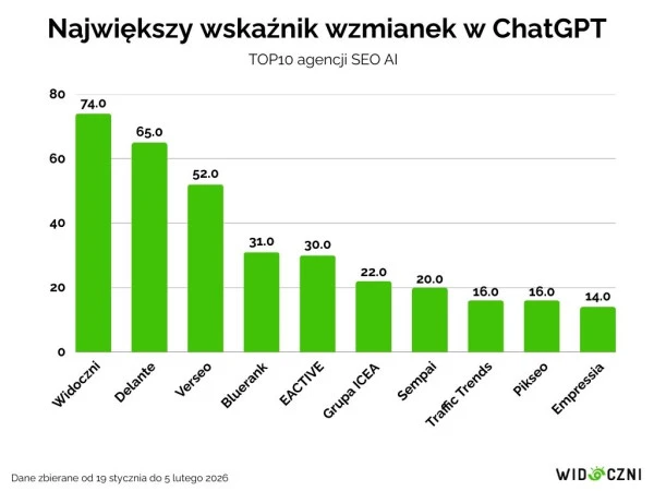Dzięki temu ranking pokazuje aktualny obraz rynku agencji oferujących SEO AI w Polsce i pozwala porównać zespoły nie tylko pod kątem wielkości, ale także realnej obecności w generatywnych wyszukiwarkach.