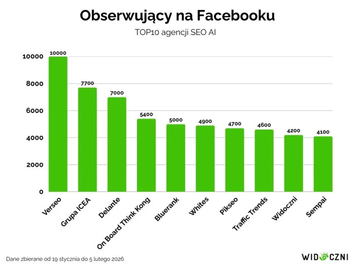 Liczba obserwujących na Facebooku - TOP10 agencji SEO AI