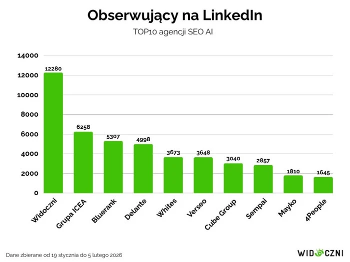 Liczba obserwujących na LinkedIn - TOP10 agencji SEO AI