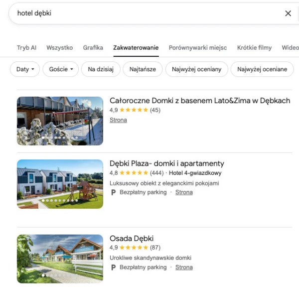 Warto zwrócić uwagę na aspekt wizualny tych typów kampanii Google Ads. Zdjęcia obiektu, lokalizacja i opinie użytkowników często decydują o kliknięciu. To detale, ale właśnie one budują zaufanie. Dobrze skonfigurowane kampanie tego typu potrafią znacząco zwiększyć liczbę rezerwacji bez podnoszenia kosztu pozyskania.