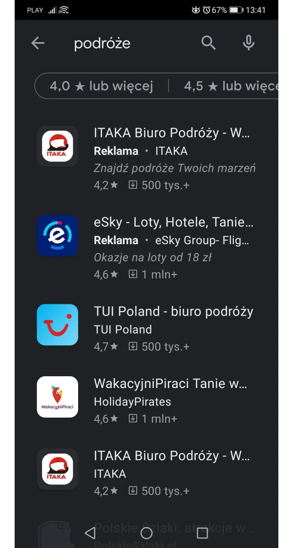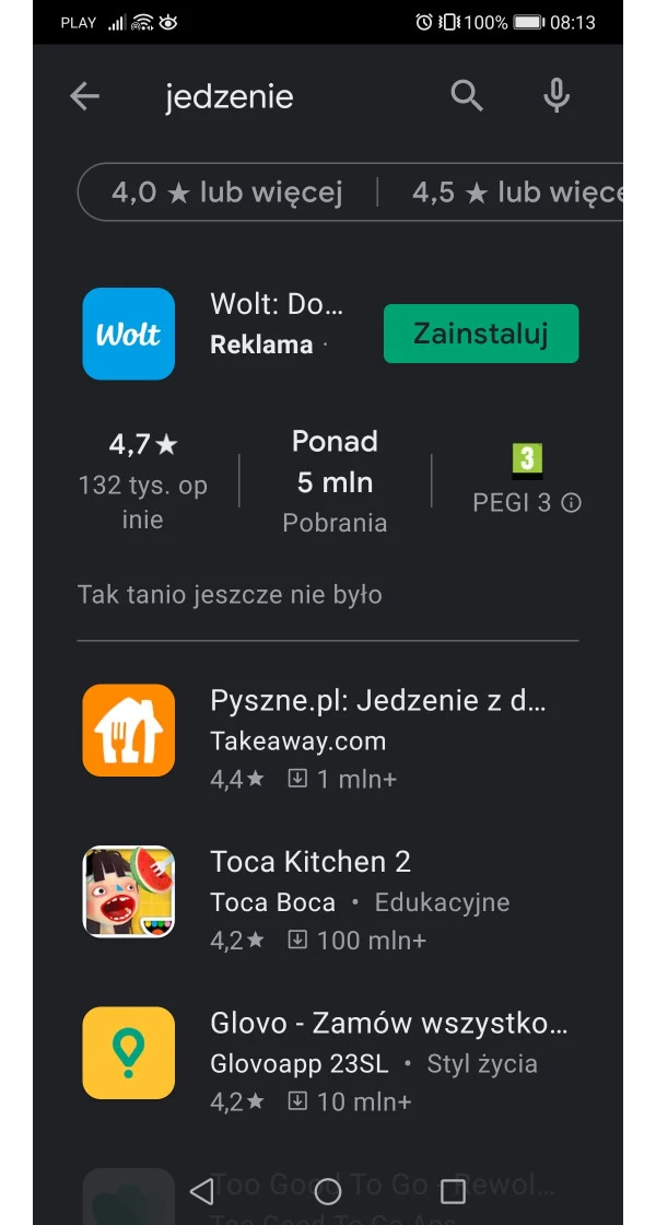 - Obok, powyżej lub poniżej wyników w Google Play,