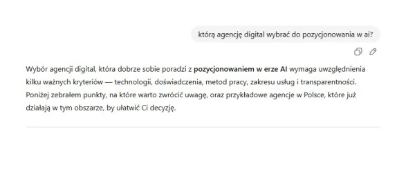 Zapytanie o wybór najlepszej agencji do pozycjonowania w AI