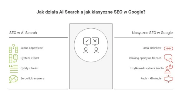 - czym różni się wyszukiwanie w Google od wyszukiwania w narzędziach AI i jak to wpływa na SEO,
