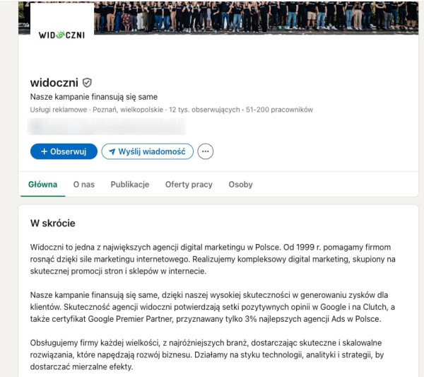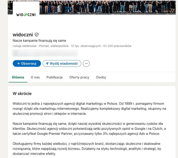 - Optymalizuj profil firmy. Zrób to w podobny sposób, dodawaj słowa kluczowe i nie zapomnij w swoim profilu prywatnym dodać informacji, że to Twoja firma.