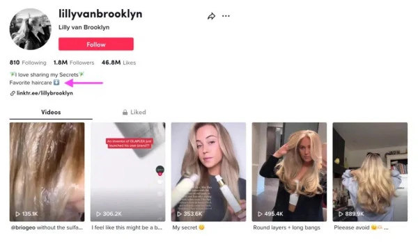 Umieszenie słowa kluczowego w opisie profilu na TikToku. Źródło: https://blog.hootsuite.com/tiktok-seo/